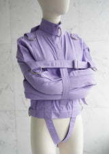 Discover the Purple ABDL Straitjacket by The StraitJacket, designed for Adult Baby Diaper Lovers (ABDL), bondage enthusiasts, and those seeking maximum restraint play. Crafted from premium, durable fabric and reinforced with 7 welded D-rings, this high-quality straitjacket ensures both security and versatility.